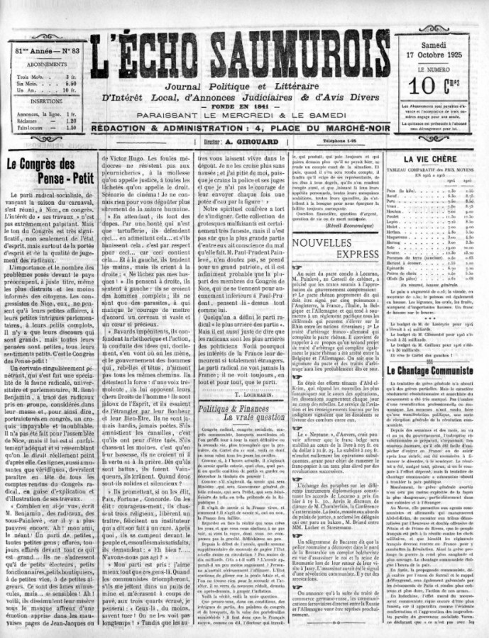 Fondé en 1841 dans l'imprimerie de Paul Godet, au n°4 de la place du Marché-Noir, l'Echo saumurois se définit comme un " journal politique, littéraire, d'intérêt local, d'annonces judiciaires et d'avis divers ".